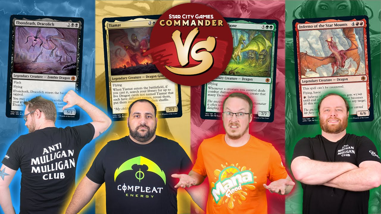In this MTG Commander gameplay, four players each led their dragon-themed decks into battle.